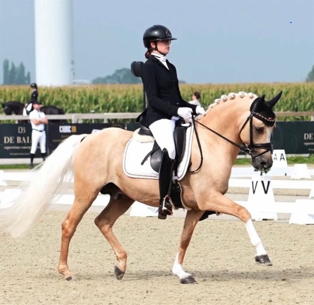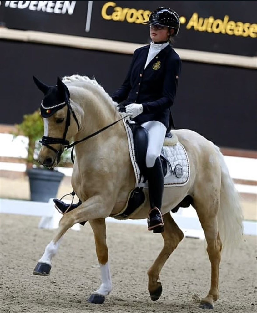 Dolino er født i Belgien, hvor han har været helt med i toppen. Både som avlsgodkendt hingst og top dressurpony.