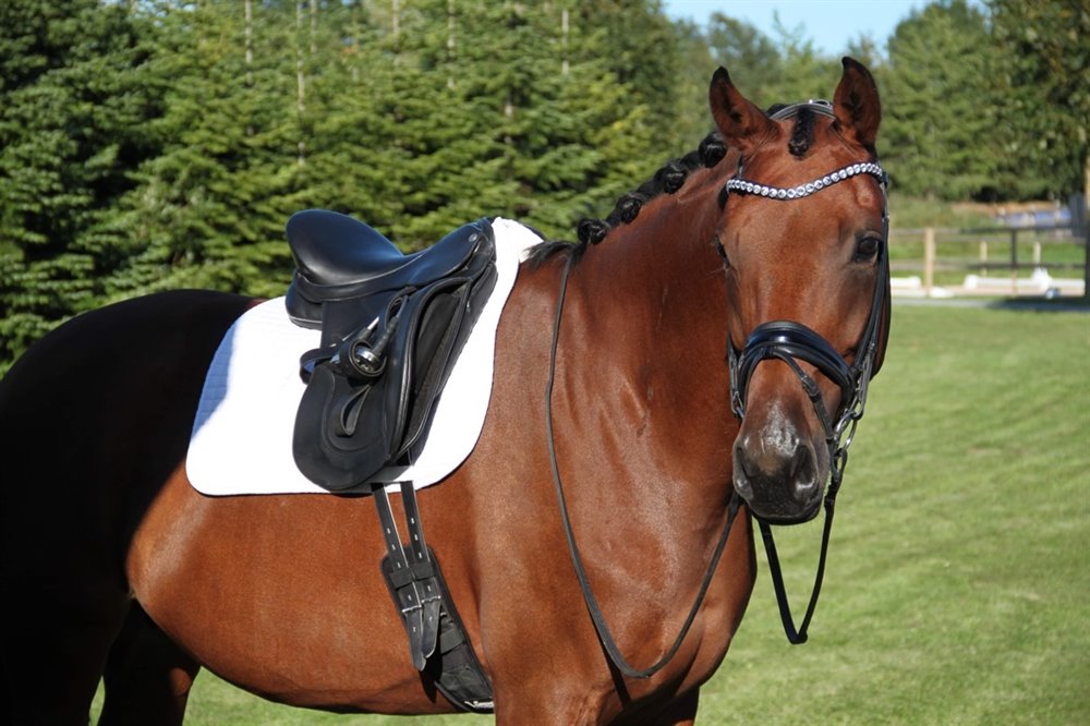 Smuk, energisk lysebrun hoppe, der også er kåret i dansk varmblod til avl og har fået et føl, 168 cm, hun er let i håndtering og så sød.