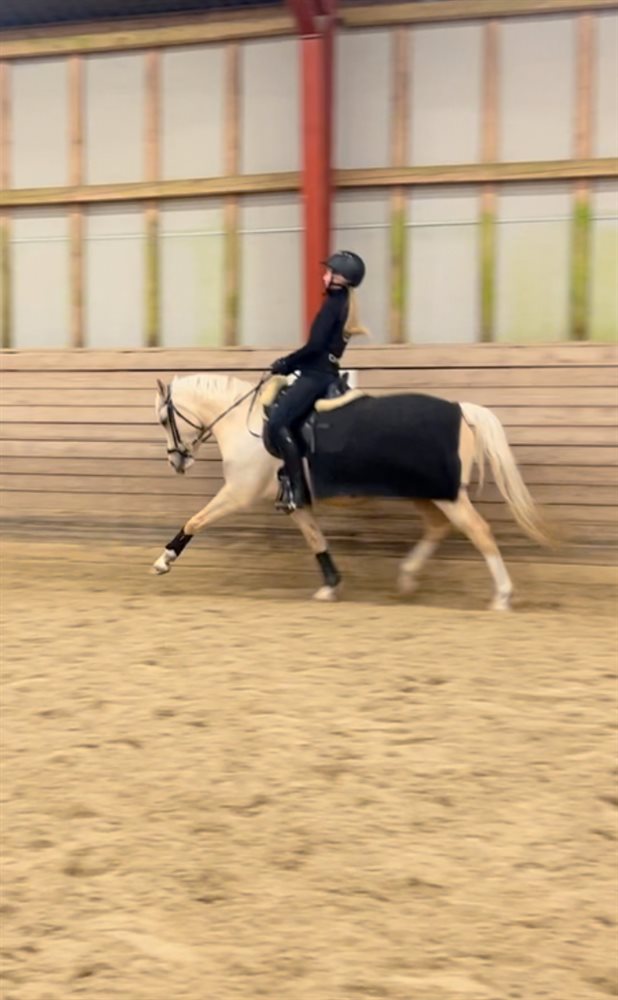 Gert er en 7-årig vallak på 140 cm med en trav, der virkelig skiller sig ud. Han har startet på LA-niveau og viser tydeligt potentiale for mere i de rette hænder. Han trives bedst med en rytter, der har en stabil grundridning og kan støtte ham korrekt, så hans uddannelse kan fortsættes i et roligt og trygt tempo.