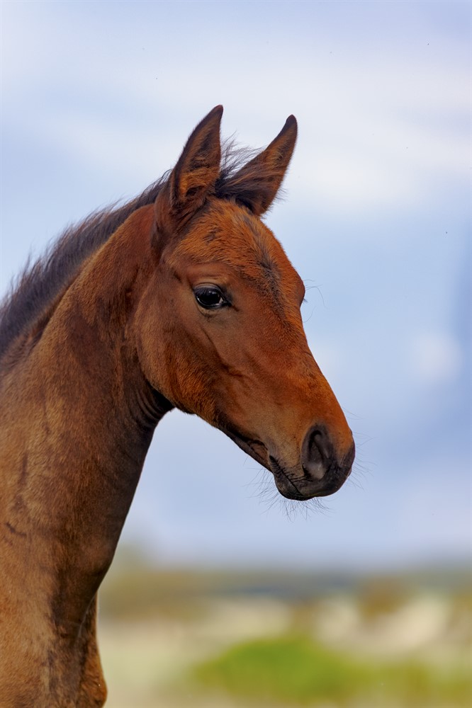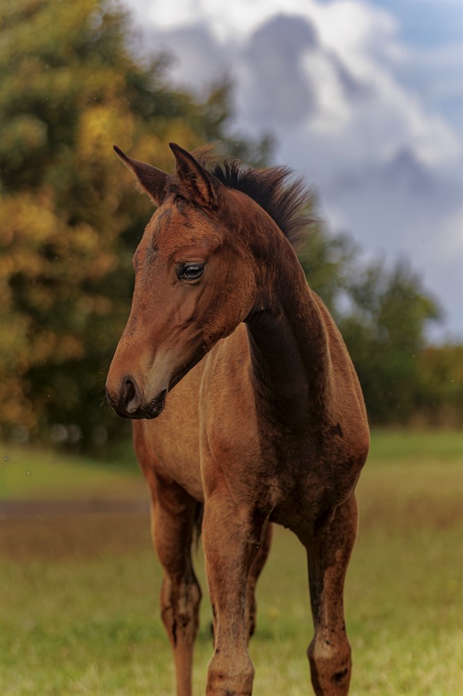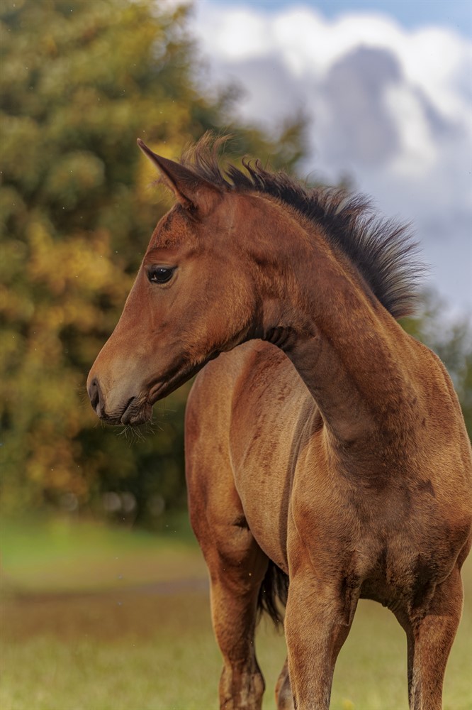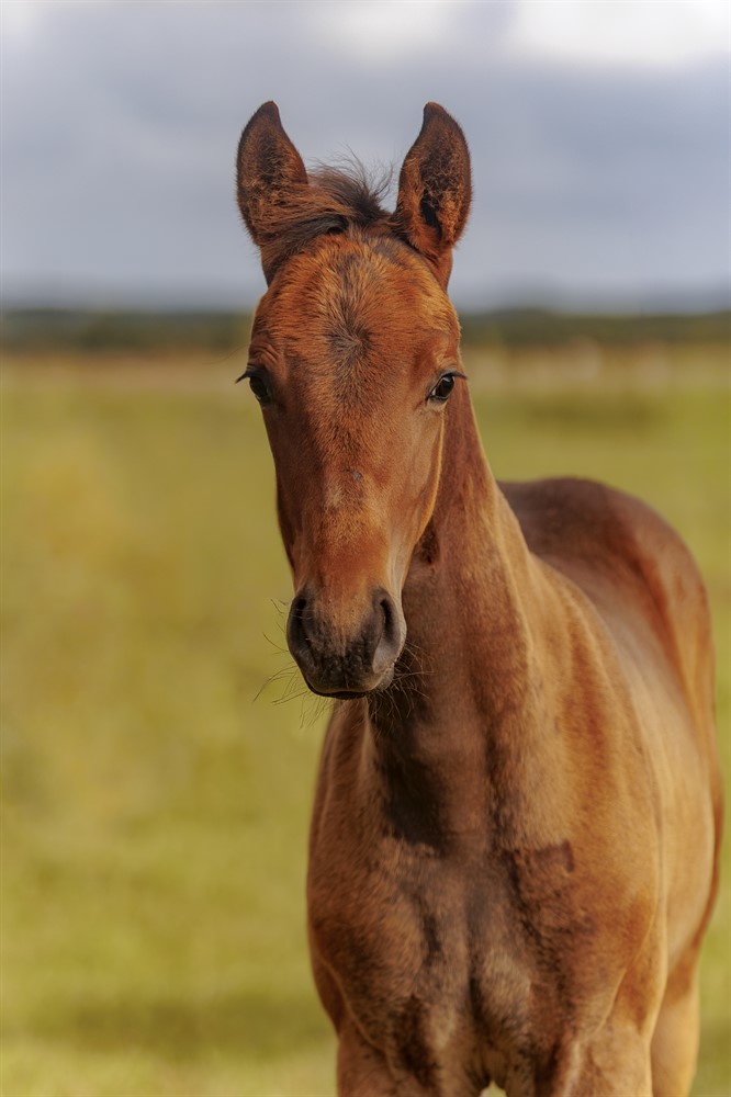 Fantastisk, ædelt og udtryksfuldt hoppeføl med velformede partier. Tre gode og funktionelle gangarter, hvor galoppen bør fremhæves.