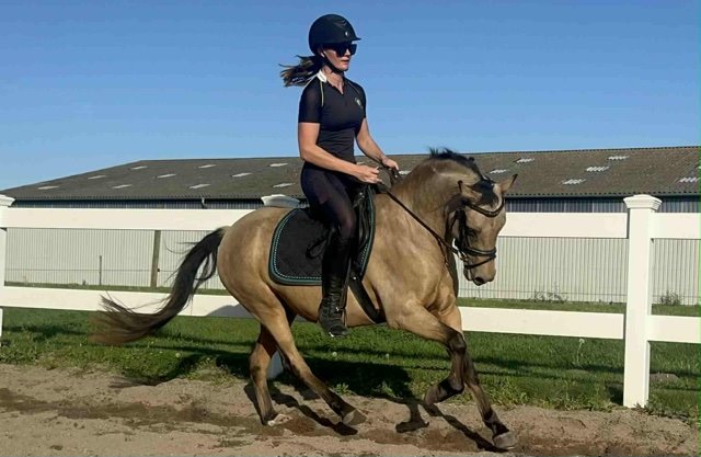En pony som giver en go tur HVER gang. Hun elsker at "gå til ridning" og arbejder godt under rytter. Hun har altid "ja-hatten" på, og gør sit bedste hver gang. Hun er tilredet henover sommeren, men er super ukompliceret og nem på alle måder, og altid glad og velafbalanceret :-)