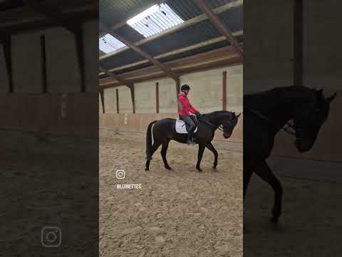 Han har et godt drive, hvor han gerne vil frem og gerne vil lave noget. Han rides for meget lette hjælpere og kan godt tage hovedet op, eller lave lille bukspring i galop anspring, hvis man trykker for hårdt til ham, men på ingen måde umulig. Har min datter på 13 år til at ride ham indimellem, hvor han er det sødeste. Videoer kan ses af dette også.