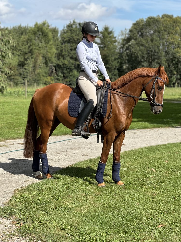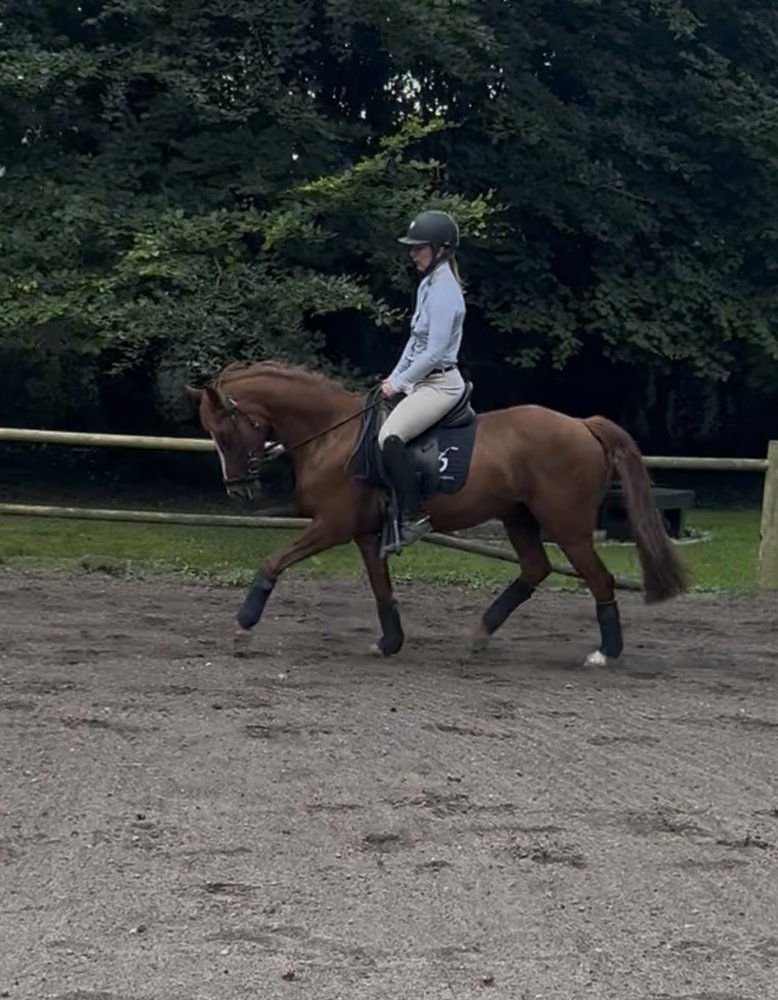 Han har prøvet at springe og viser interesse for det, men vi har primært arbejdet med dressur. Han er typen, der vil kunne udvikle sig i flere retninger alt efter, hvad den kommende ejer ønsker. Det vigtigste for ham er, at han får en rytter eller familie, der vil bruge tid sammen med ham og sætte pris på hans gode sind.