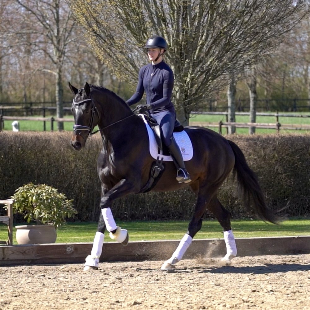 Hun er en meget sød og ukompliceret hest som er nem i al håndtering. Klar til LA klasser og er for nyligt blevet præsenteret for changementer med et rent byt hver vej.