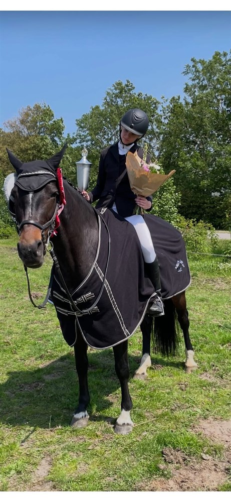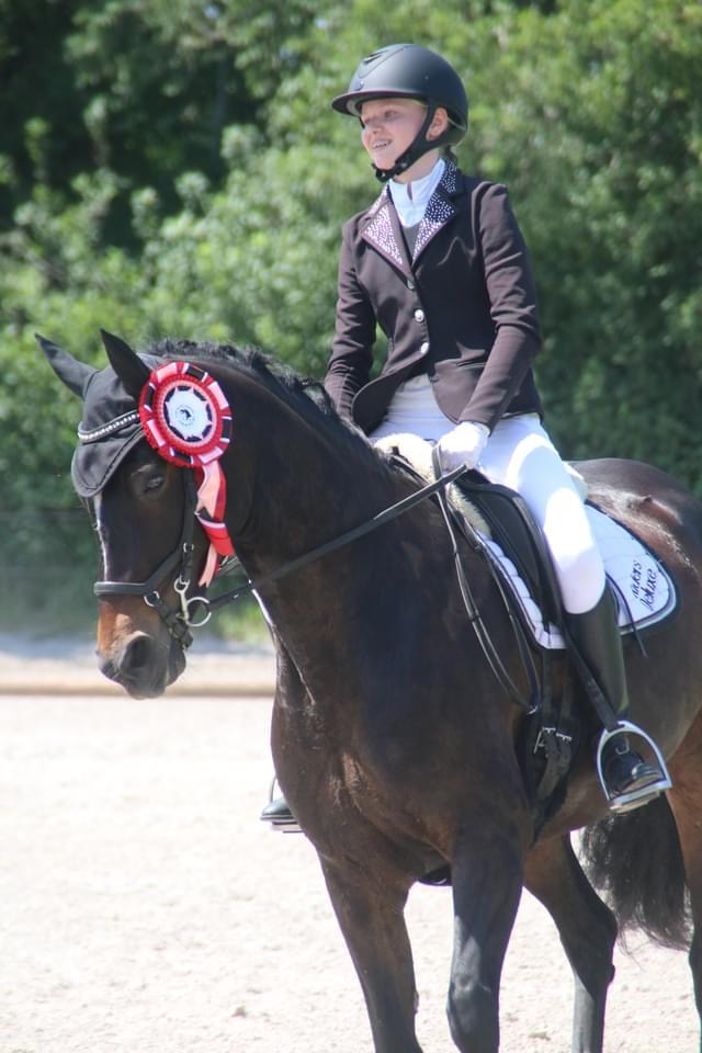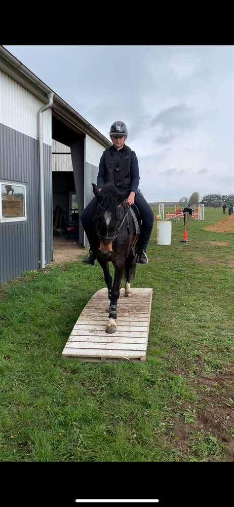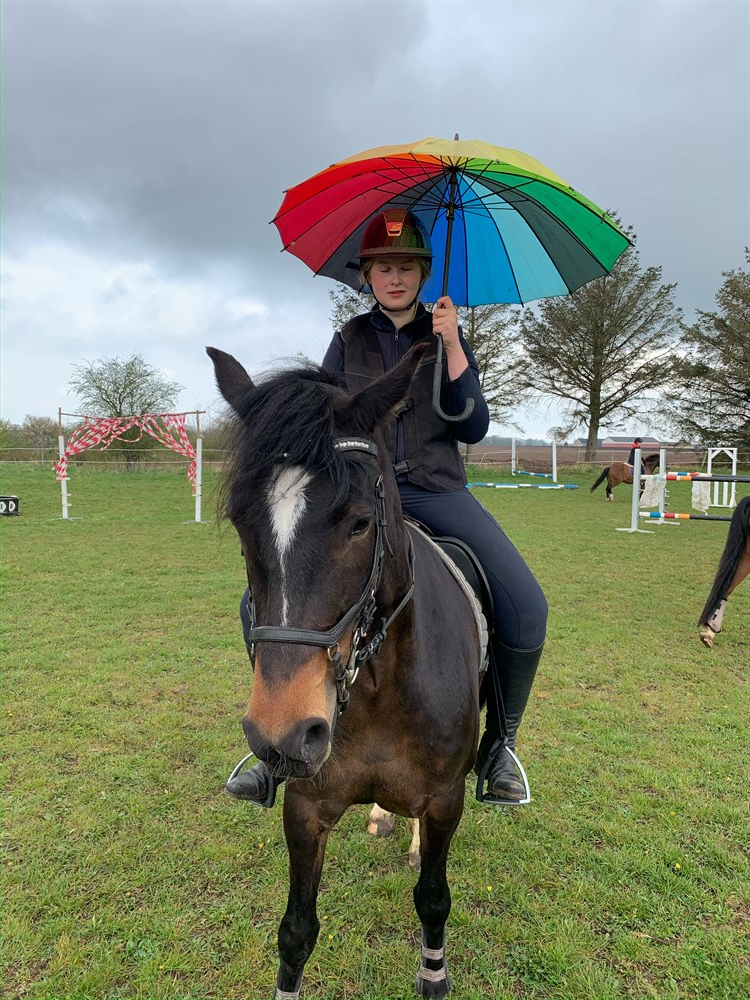 Dygtig dressur pony, som min niece er i gang med at lave til spring pony. Spring er stadig lidt svært. Primært på opvarmningen, hvis andre heste kommer for tæt på.