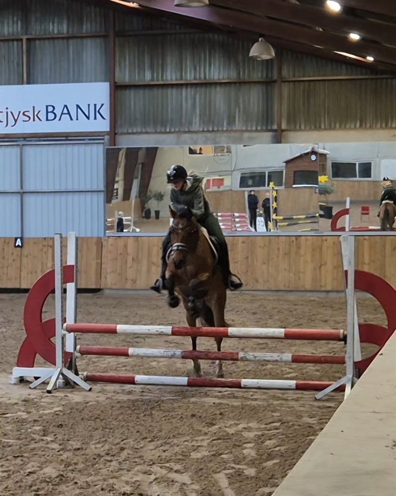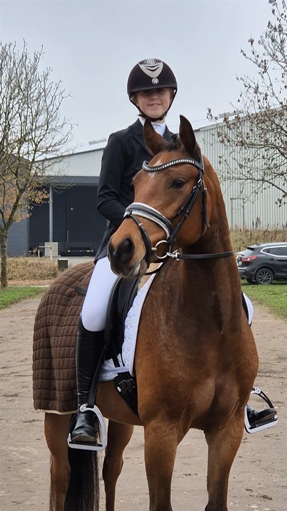 Han har deltaget i Dansk Sports Pony 4 års championat i dressur med flotte point.