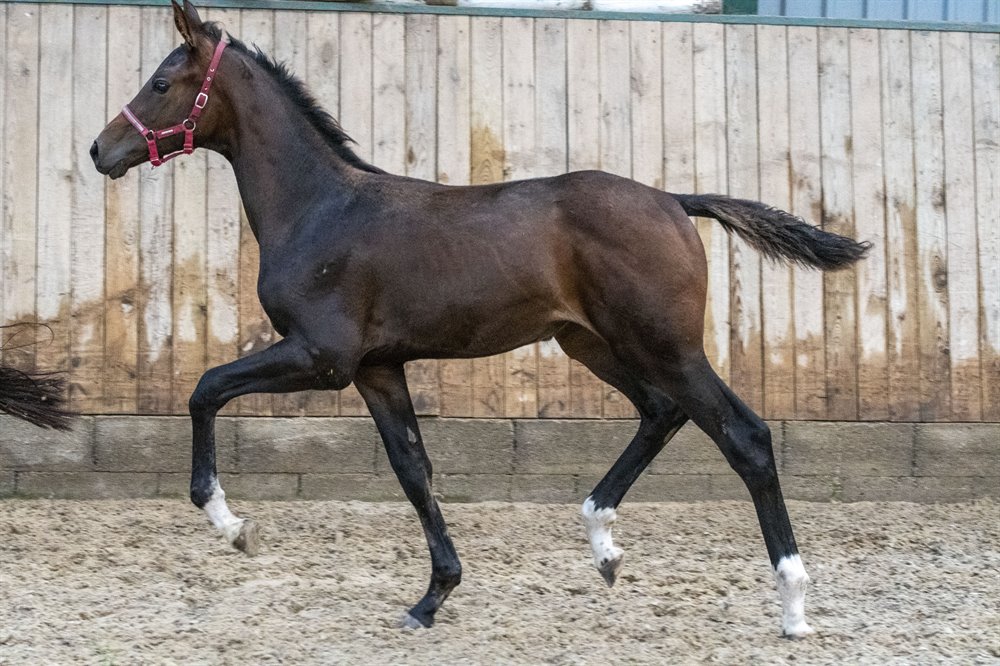Spændende dressurhoppeføl med udtryk og tre særdeles gode gangarter. Hun bevæger sig med elegance og elasticitet. Kalhave’s Miss Satisfaction er nysgerrig og nem i al håndtering. Hun er passet med smed.