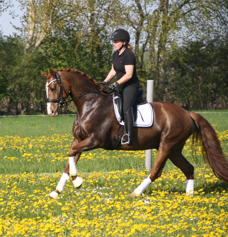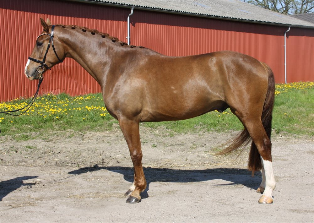 Dejlig allround hest med fantastisk sind og temperament, tre gode gangarter og godt spring. Meget let fortil, samt for sæde og ben. Går lige så godt bidløst som med bid. Nem i alt håndtering og går lige i trailer (kan læsses af en person). Flink på tur, både alene og med andre heste. Går fint i blandet flok og er ikke dominerende. Startet dressurstævner som 4 års med placering, men ikke startet siden pga. rytters manglende tid. Ej startet i spring. Gennemført to jagter som hhv. 4 og 5 års.