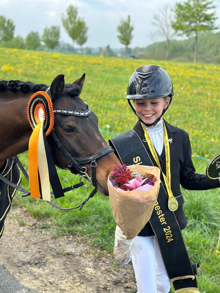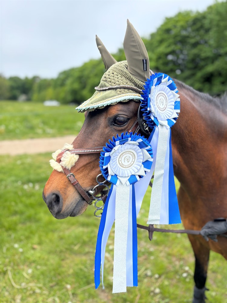 Han er dygtig til både dressur og spring, og min datter har opnået mange sejre og placeringer på ham. Blandt andet kan nævnes: Sjællandsmester i dressur 2024 og 2025, Sjællandsmester i spring 2025, Distriktmester i dressur 2025, Distriktmester hold spring 2025, bronze ved Distriktmesterskabet i dressur 2025 og sølv i 2024. Vinder af sølvtur til D4 Horseshow 2025, top 5 placering i sølv og bronzetur til CSWU og mange flere. Han går dressur op til LA2 med kapacitet til at ride højere og går fejlfri MB spring med kapacitet til at gå højere (fejlfri og vinder af MA med tidligere ejer).