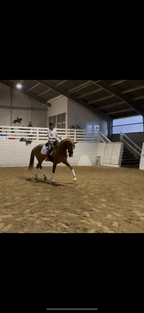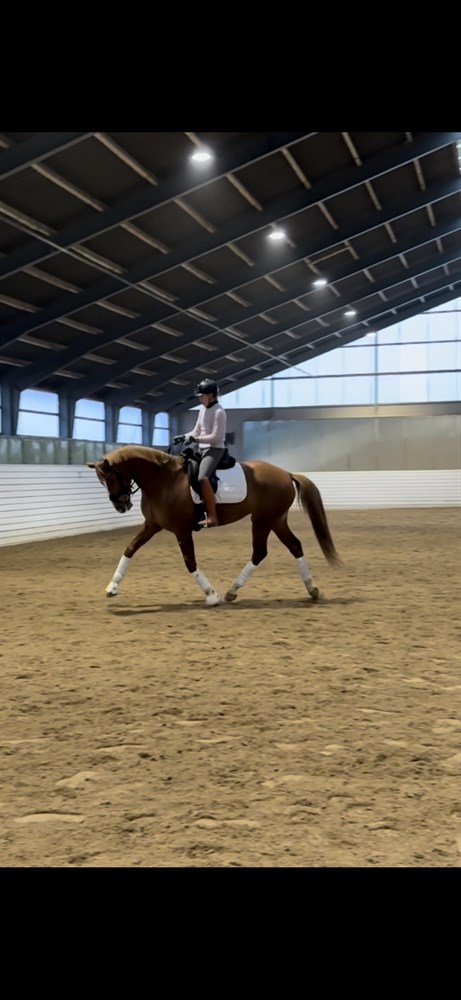 Petite er en super skøn hoppe på 7 år. En hest med et helt fantastisk godt sind og tre gode gangarter. Hun er sød i al håndtering, og kan rides på tur, både med andre og alene.