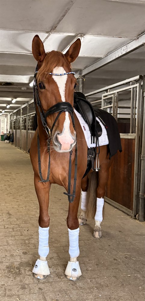 Udstyr kan købes med til hende (Prestige sadel, trense, dækkener osv.)