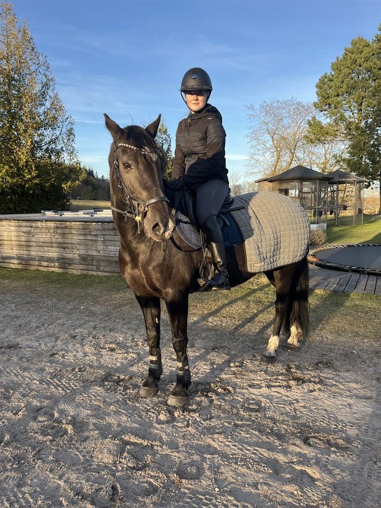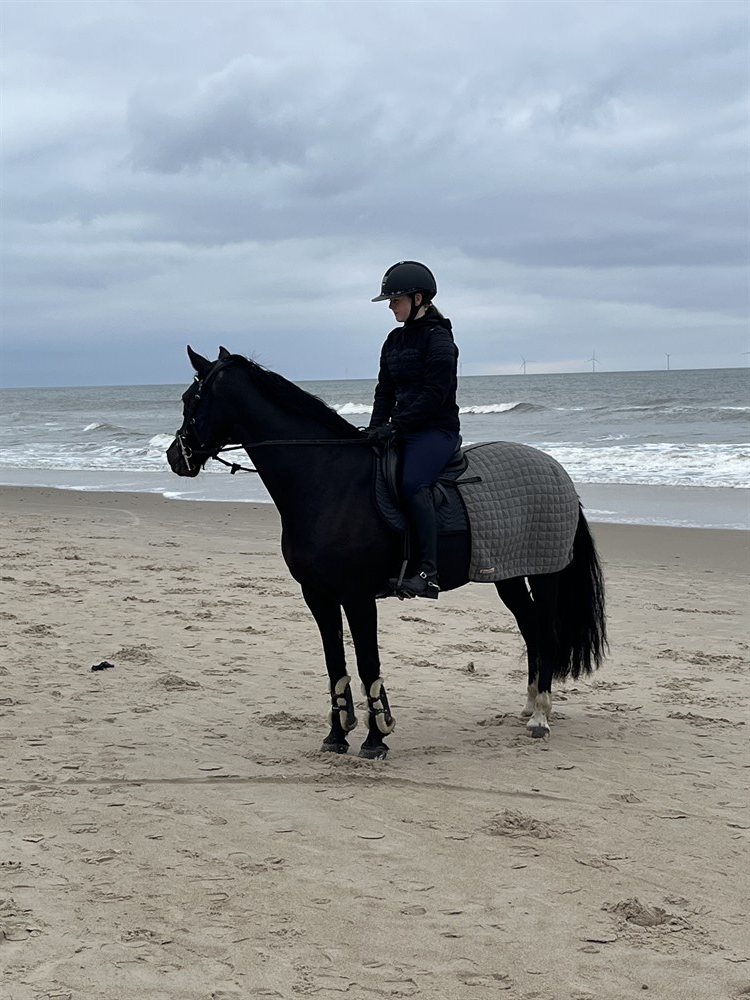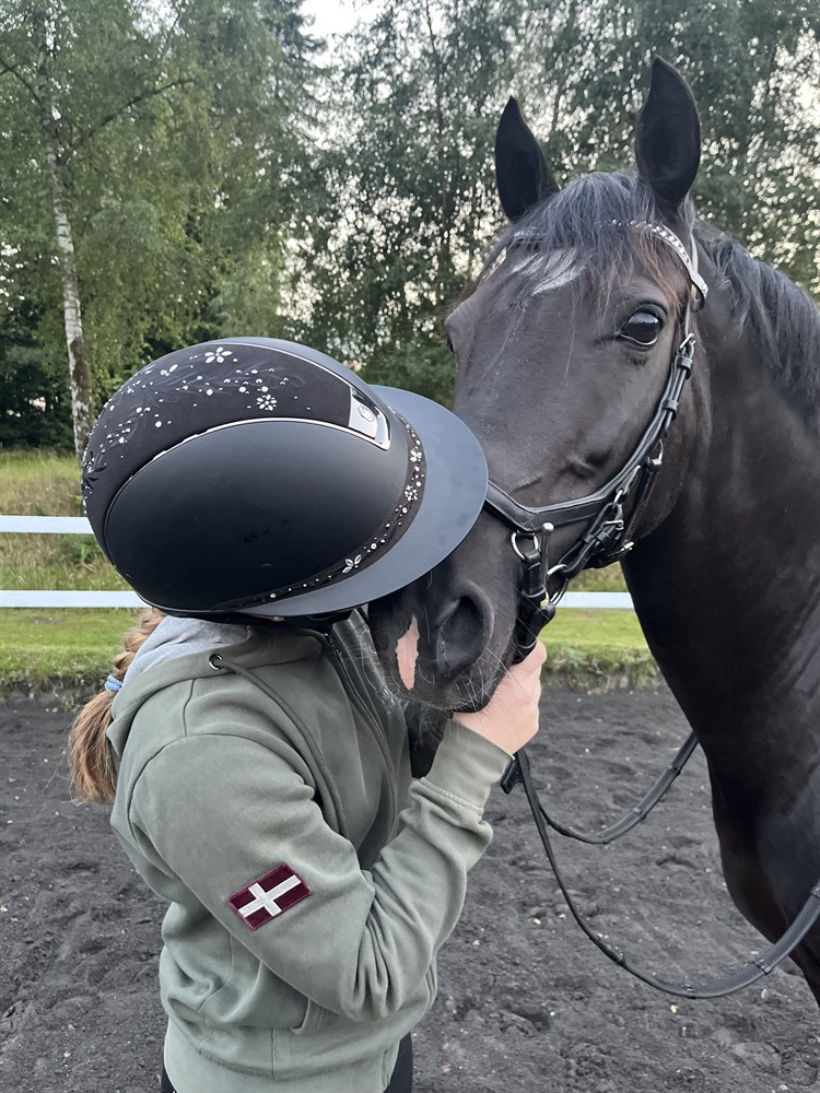 Brenda er cool at have med i byen og står fint i trailer. Hun har været med gamle ejer på efterskole, med vores datter i praktik på et større hestested, til stævner, træning væk fra opstaldningssted, badet i Silkeborg søerne og en været en tur på stranden ved Vesterhavet.