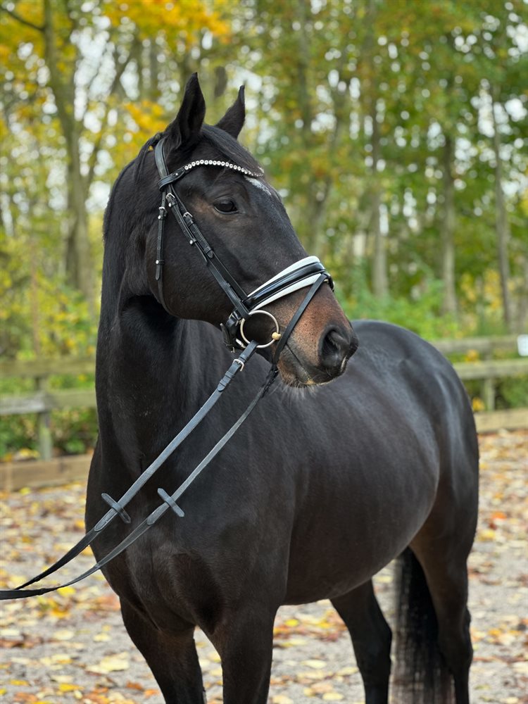 Han er brugt til let dressur hest, og en lidt tur ridning. Han er 7 år måler 167cm og har grønt pas (Oldenborg/trakhenr).