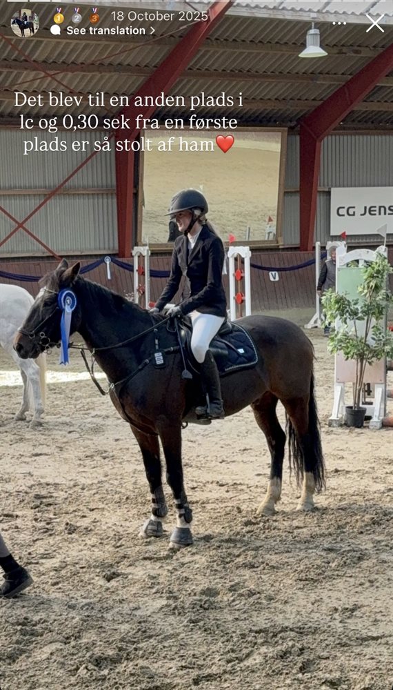 Han har gået PRI i dressur og springer rutineret baner på 100 cm+. I løsspring har han vist imponerende spring helt op til 150 cm, hvilket vidner om et stort og ærligt springtalent.