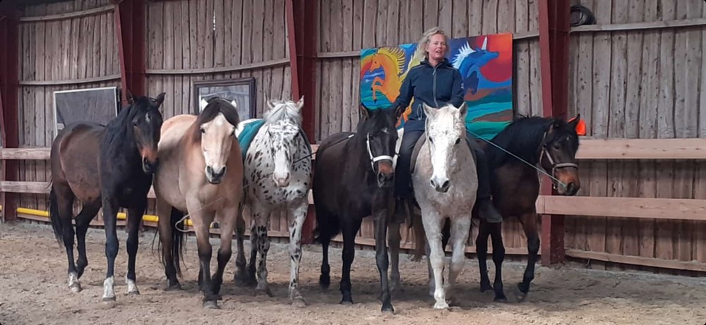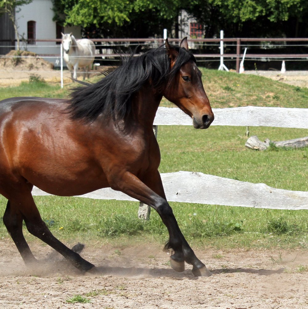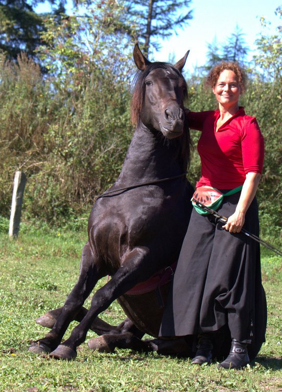 Lunallena er en veludviklet hoppe ud af en imponerende, hingstepraegede DV-moder fra elitehingsten Apollo, og faren er den karismatiske PRE-Showhingst Pimenton IV. Lunallena er en rolig, blid,nysgerrig, meget menneskeorienteret hoppe, som lever robust i en stor flok med andre følle og hopper. Hun er vaccineret og ormebehandlet, afslappet ved smeden, trailervant og kender til mange andre dyr og hverdagssituationer. Den tiltraekkende blanding af varmblod & spansk esprit lader forvente en alsidig ridehest med en særlig høj samlingsevne. Billeder af forældrene til sidst i galerien (brun mor, sort far). Lunallena har begynt med traeningen i frihedsdressur og flokarbejde. Hun kan ga frit som handhest og i gruppen (se billed). I frihedsdressuren er hun interesseret i nye udfordringer og har laeret basicövelserne af jordarbejde og trailparcours. Hun er ogsa vant til at ledsage en ridehest pa skovture.
