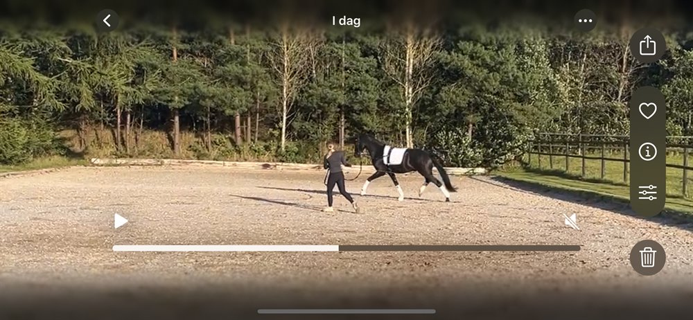 King er i rivende udvikling og har d. 13/10 haft rytter på 4 gange ialt og tager alt i stiv hov, går rundt frit med rytter på i skridt og trav med god selvtillid og balance.