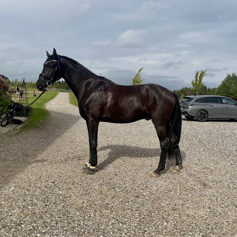 Gudesmuk glansbillede af en 3 års vallak, med 2 hvide sokker og en sød lille stjerne. Han har 3 gode gangarter hvor især skridten skal fremhæves med god overtrædning og smidighed i overlinjen.