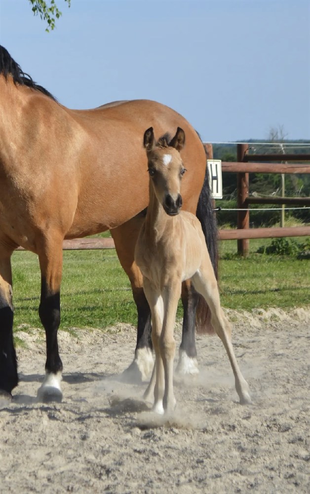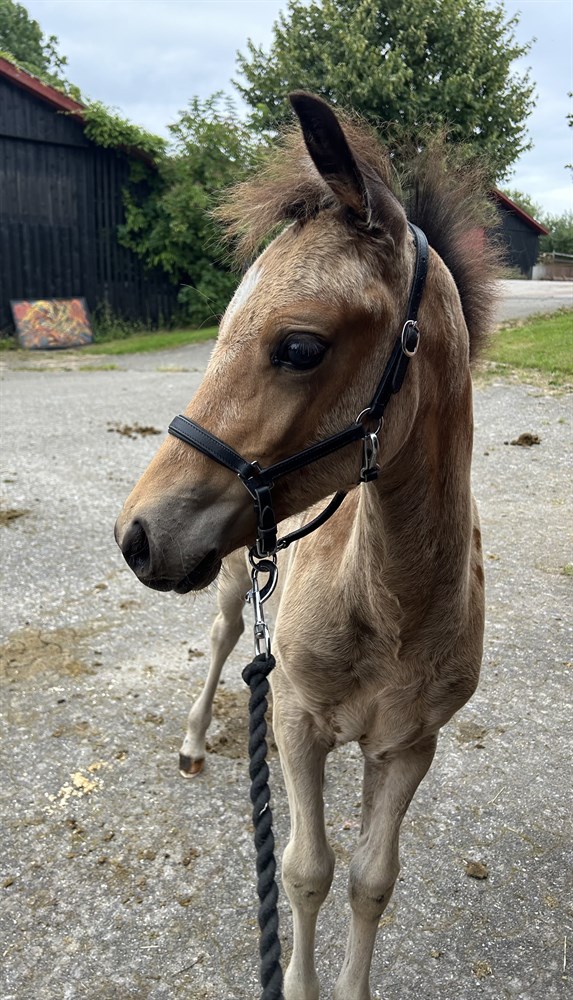 Derfor vil vores lille Gule kunne bruges i sporten i både dressur og spring, samt military, og kan kåres som hingst i DSP og/eller welsh. Han har welsh ponyens brugsegenskaber og sikkerhed, samt DVs ekstra gnist og gang.