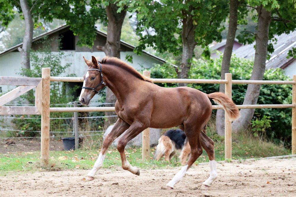 Mor, Horsmarks U’dessa er kåret i DS. En meget ridelig og velgående hoppe med særdeles godt temperament. Far, Dynamic Dancer, fløjhingst i Herning 2025, vinder af dansk varmblods 35 dages test.