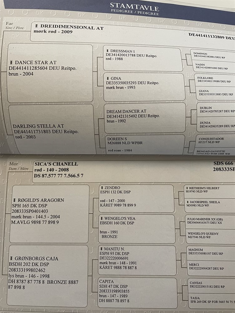 | Mor: SICA'S CHANELL (SDS 666) | MF: RØGILD'S ARAGORN (SPH 165) | MFF: ZENDRO (ESPH 132) |