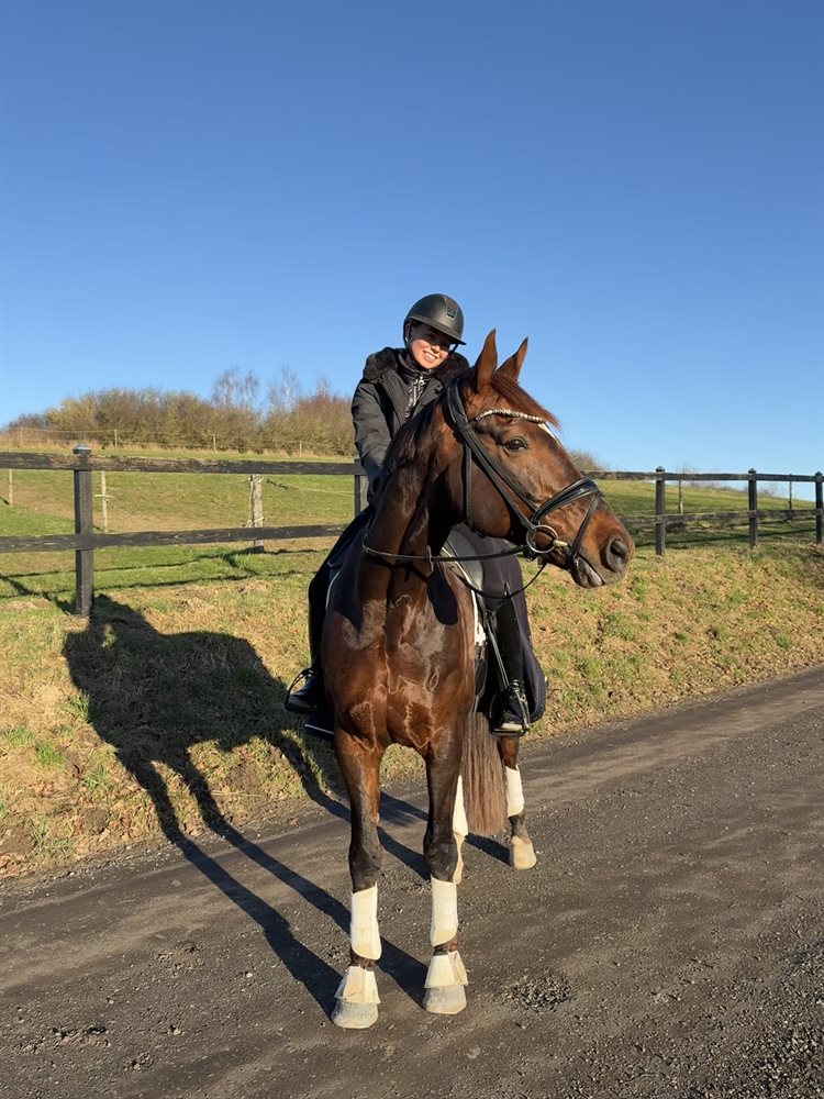 Han er nu i ridning hos Storms Dressage/Cecilia Rømer Storm på Kildegaarden i Holbæk, hvor han kan ses og prøves.