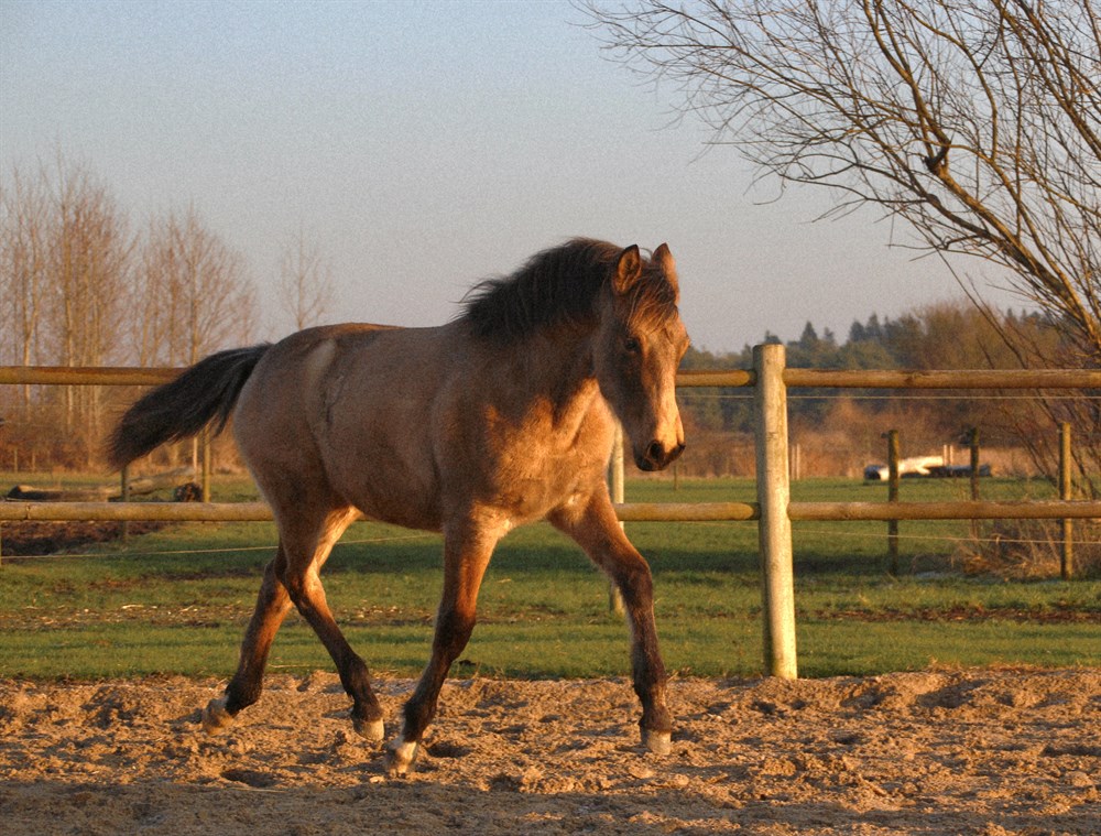 Han er en rolig hest med power i. Enormt arbejdsvillig og imødekommende!