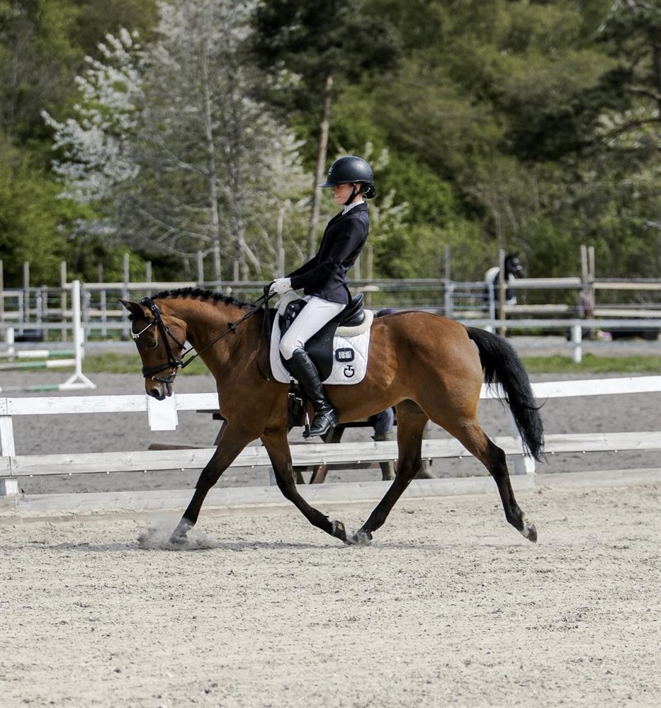 Saüvenir (Suvi) vil gøre alt for sin rytter. Hun har et dejligt sind, er meget rolig og nem at omgås – men har absolut også en gnist når hun er på springbanen.