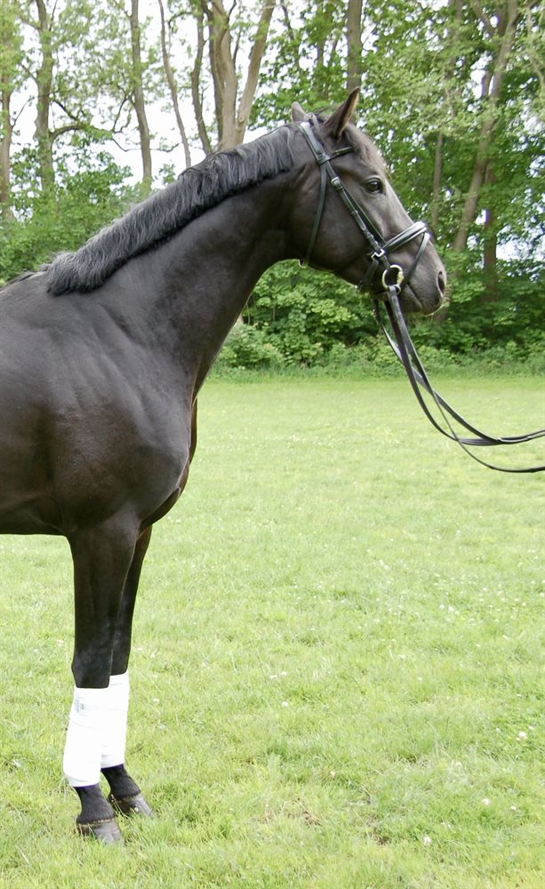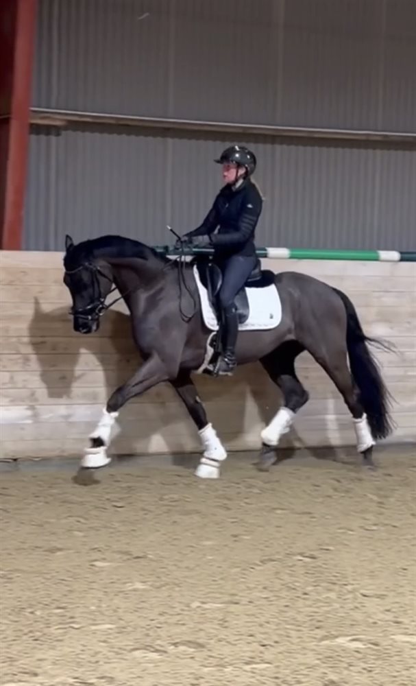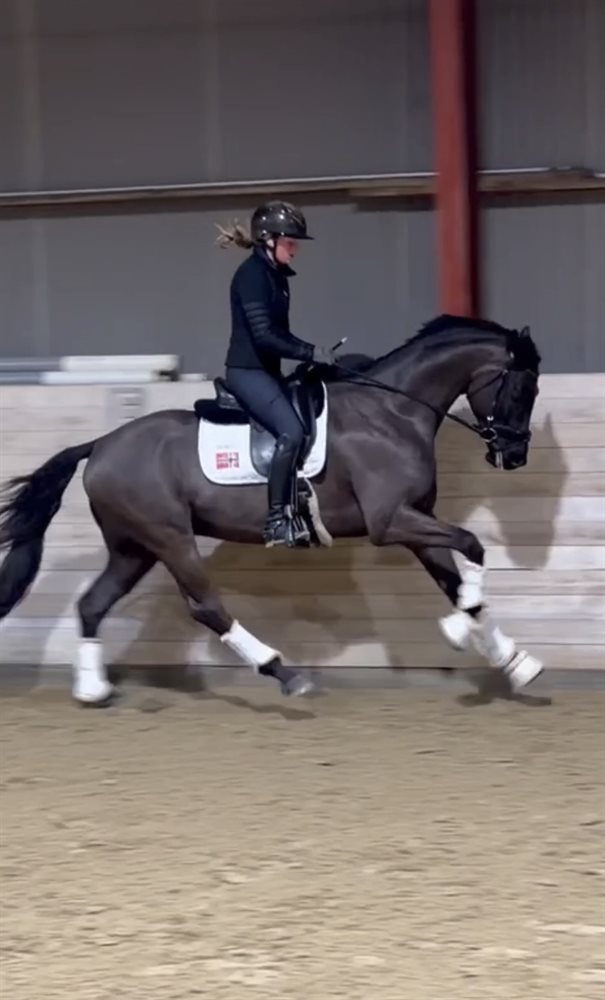 He got started under saddle in the beginning of 2025 and is therefore still a bit green, but is showing great potential for the bigger show classes.