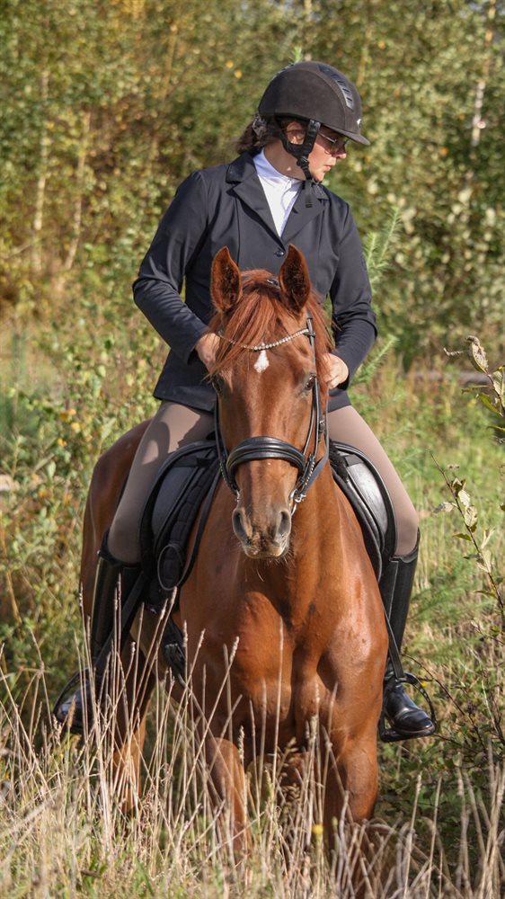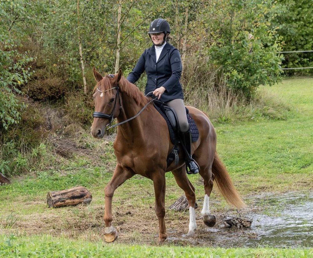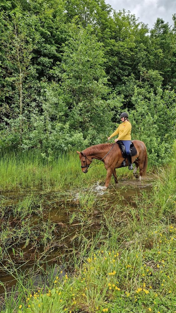 Han er 100 % trafiksikker og kan rides på tur både alene og sammen med andre heste.