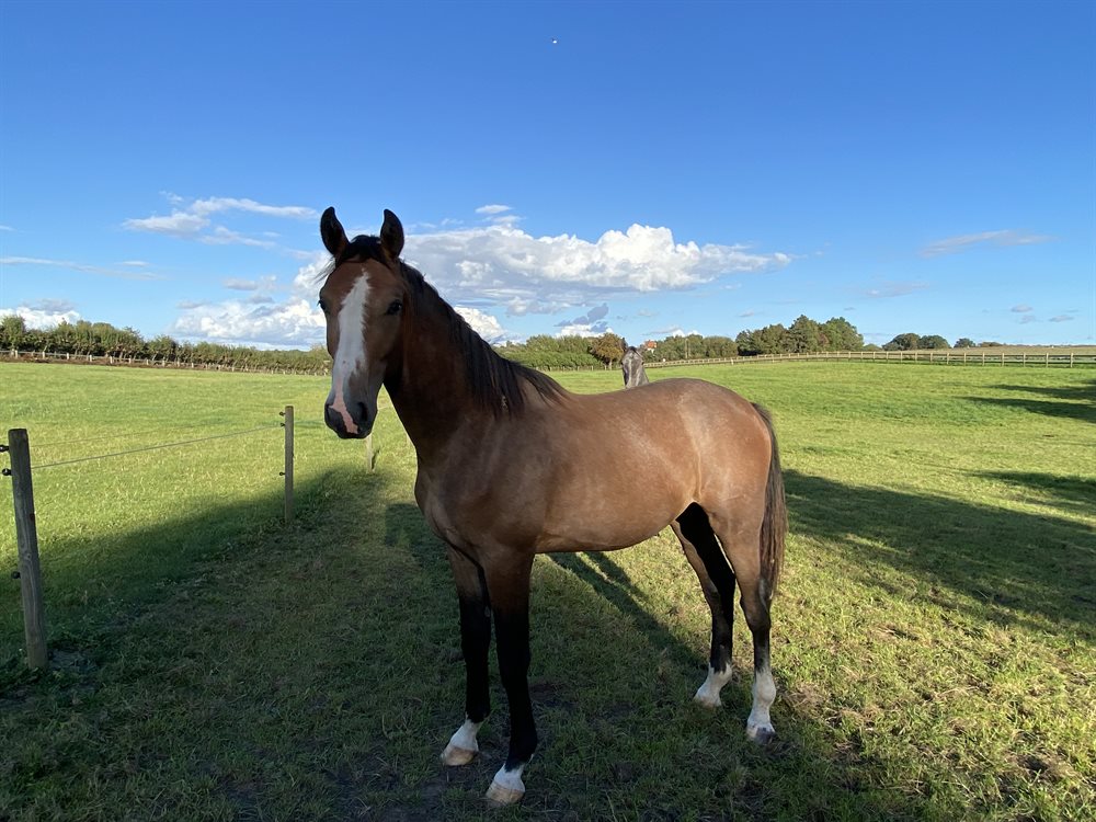 Sød og omgængelig. Dejlig rummelig galop.