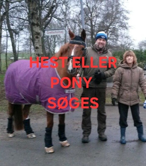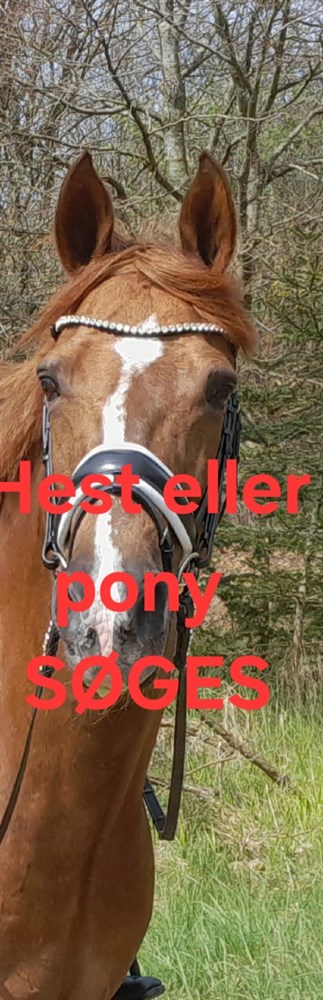 Gerne ældre pony eller hest som skal nyde sit otium, uden stævnedeltagelse i nævneværdig grad.