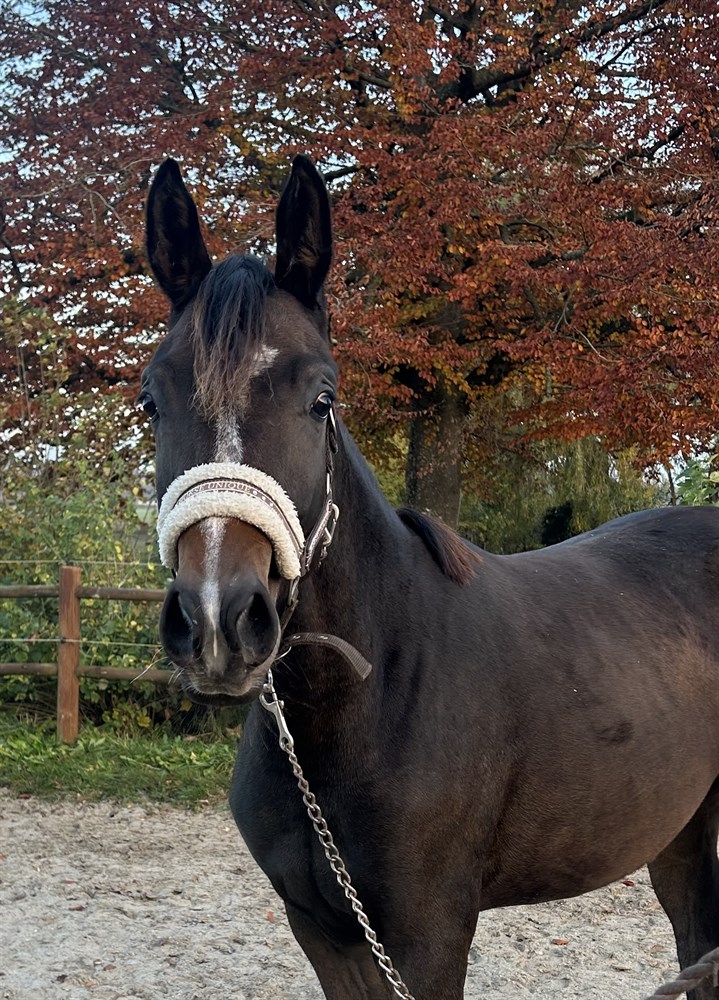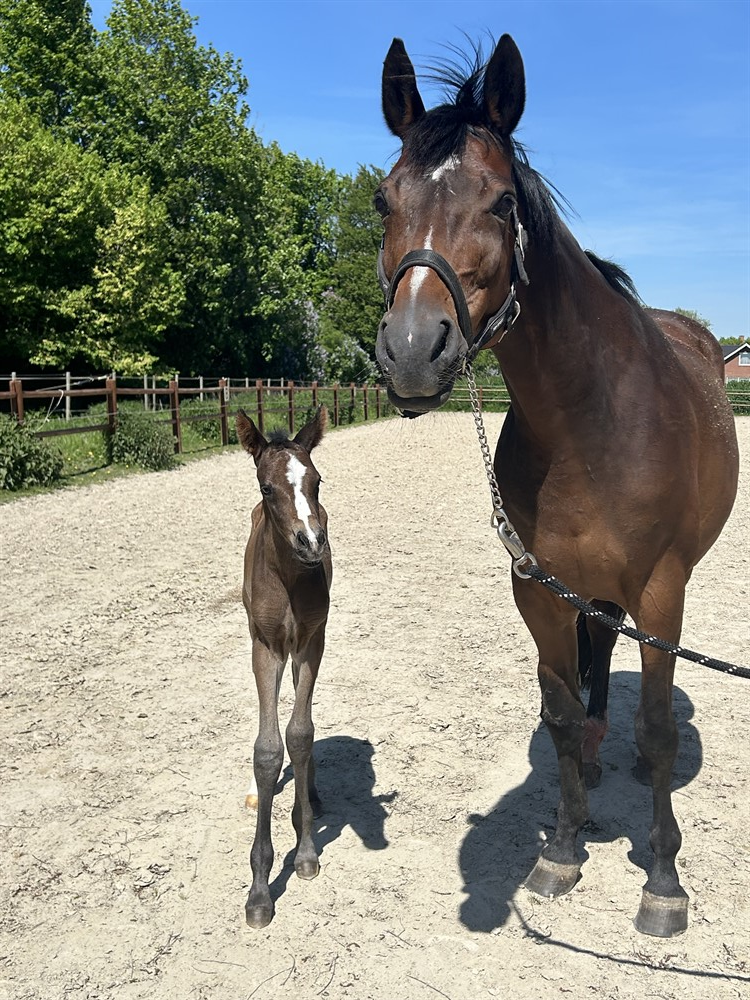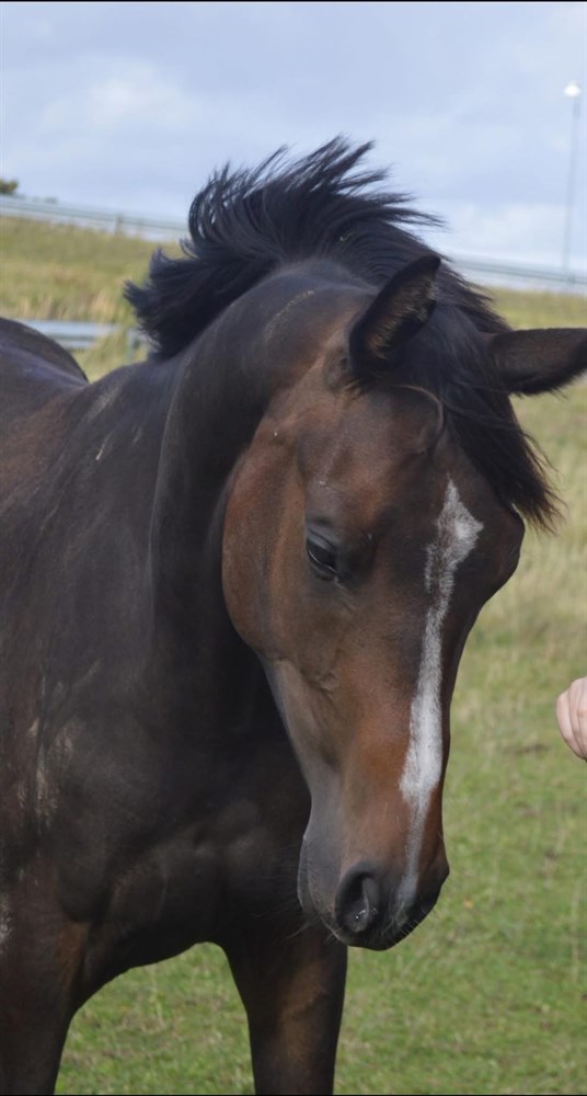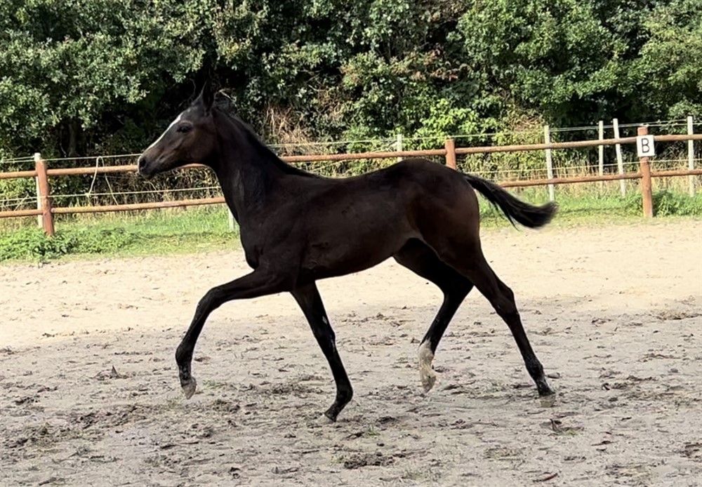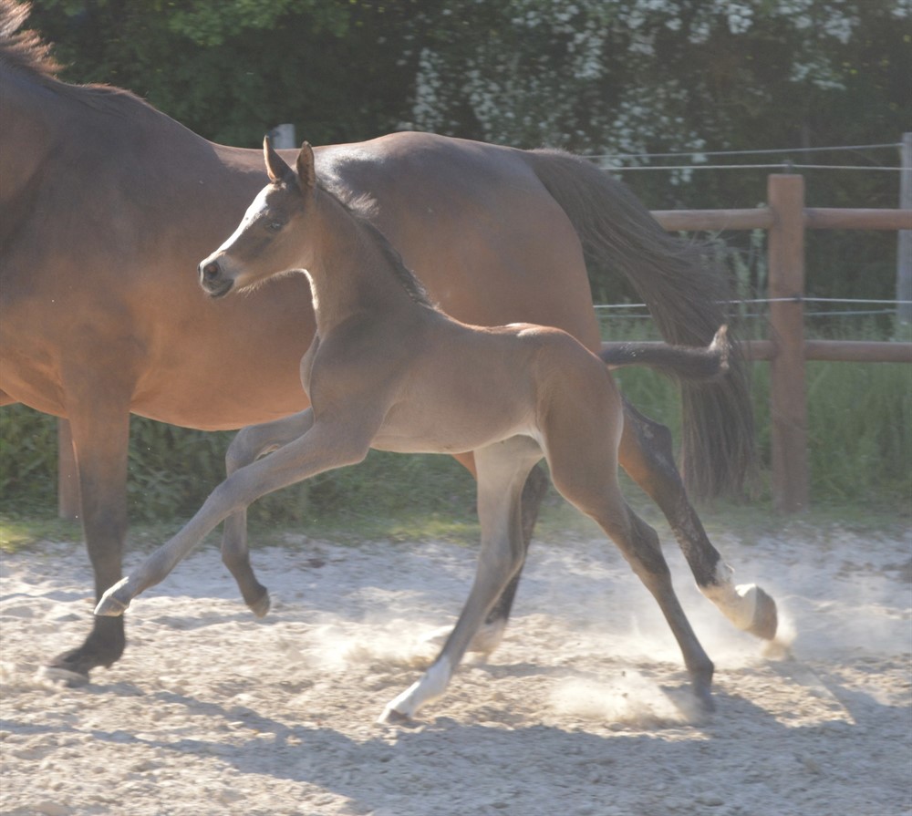Smuk og helt vildt velgående hoppeplag på 1,5 år til fremtidens dressurbaner. Hun har 3 rigtig gode gangarter, masser af power og her kommer jeg attitude, samtidig med at hun har et kraftigt kønspræg med hendes feminine hoved og velproportionerede fine krop med meget lange ben. Mor og Mormor er begge er kåret i DH med 8 i helhed.
