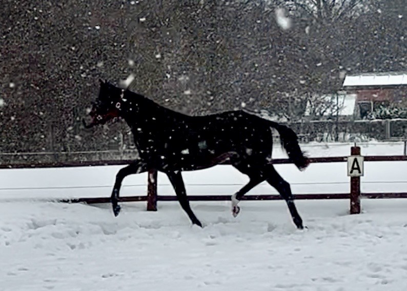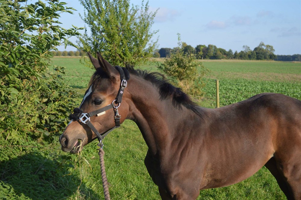 Smuk og helt vildt velgående hoppeplag på 2 år til fremtidens dressurbaner. Hun har 3 rigtig gode gangarter, masser af power og her kommer jeg attitude, samtidig med at hun har et kraftigt kønspræg med hendes feminine hoved og velproportionerede fine krop med meget lange ben. Mor og Mormor er begge er kåret i DH med 8 i helhed. Hun er meget social og elsker menneskelig kontakt.