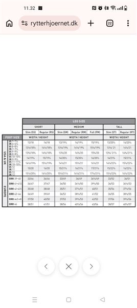 Størrelses guide indsat som billedet, men kan ellers findes på nettet.