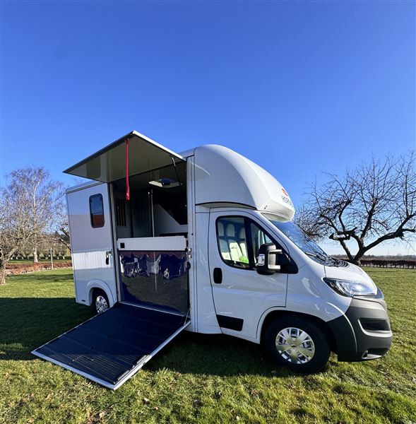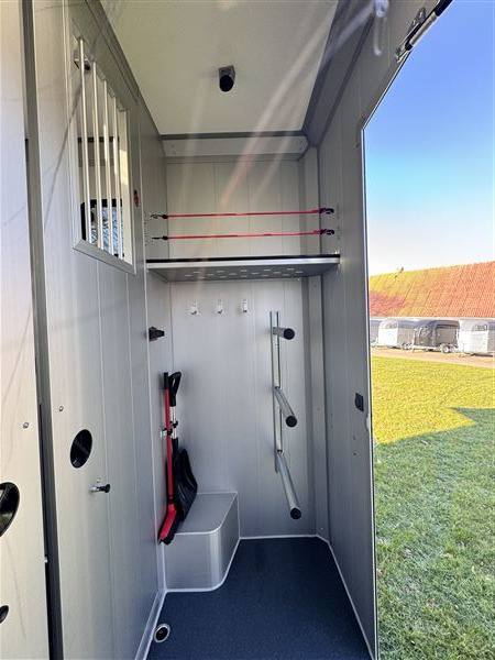 Hestebil med sikker boksindretning. Ingen krybber eller bomme hestene kan springe over. God plads i fører kabinen, således at føresæde kan justeres optimalt til fører. Bagerste rum kan rumme stævneskab. Kvalitetsopbygning men rustfrie beslag og solid opbygning. Se de mange gennemtænkte detaljer.