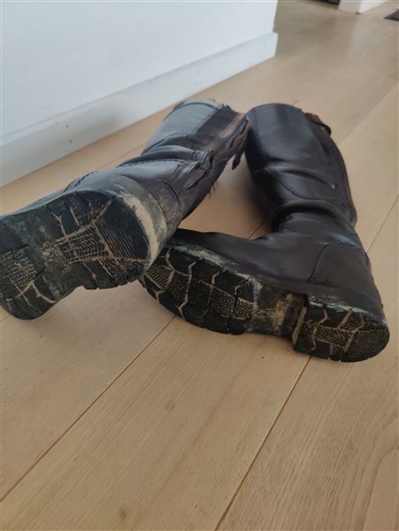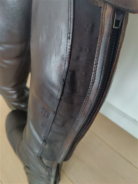 Slidte og derefter repareret ved elastik/ lynlås - se billed.