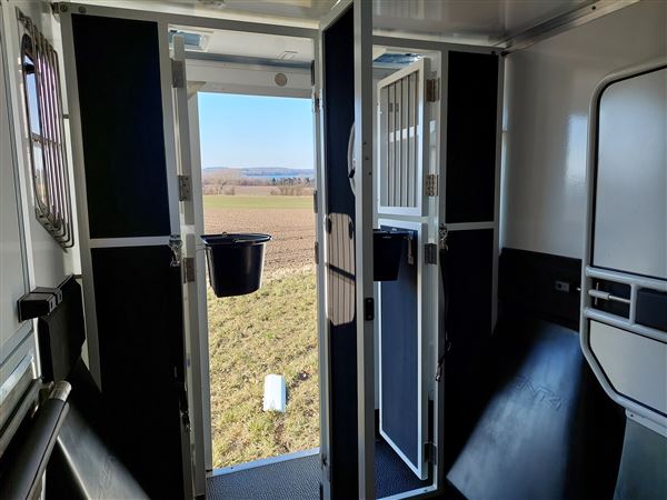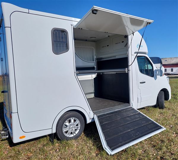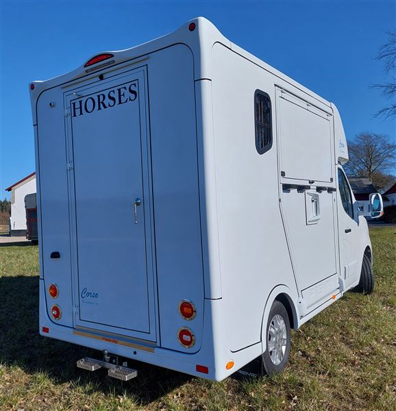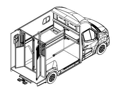 Hestebil med sikker boksindretning. Ingen krybber eller bomme hestene kan springe over. Lille handy bil under 6 meter. Derfor lille brotakst. God plads i fører kabinen, således at føresæde kan justeres optimalt til fører. Bagerste rum kan rumme plastskab. Kvalitetsopbygning men rustfrie beslag og solid opbygning. Se de mange gennemtænkte detaljer.