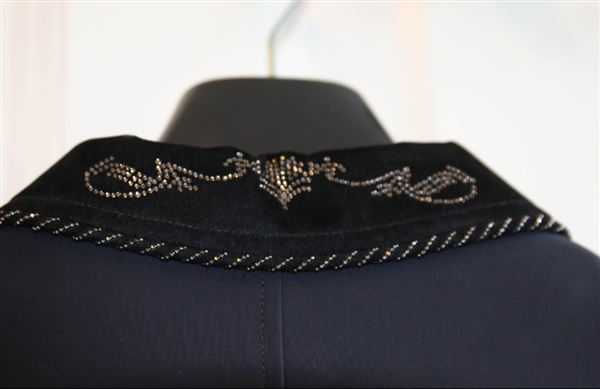 Utrolig flot sort Equiline dressurkjole med mange smukke detaljer.