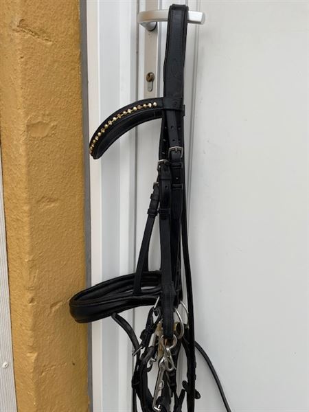 Kandaren er fra Hubertus, sælges med det originale sorte pandebånd. Har et fint næsebånd som bliver smallere ud mod bidene, så der er ekstra plads.