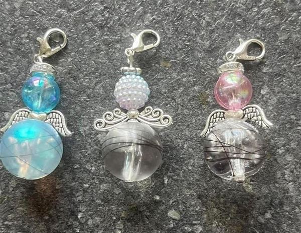 Jeg laver 2 slags engle, en almindelig engel som kan bruges som nogle ting som koster 15 kr stk og så laver jeg lykke engle med dyrehår - så har du et kæledyr du godt vil have et minde med kan jeg lave det - en engel med dyrehår koster 50 kr stk:)