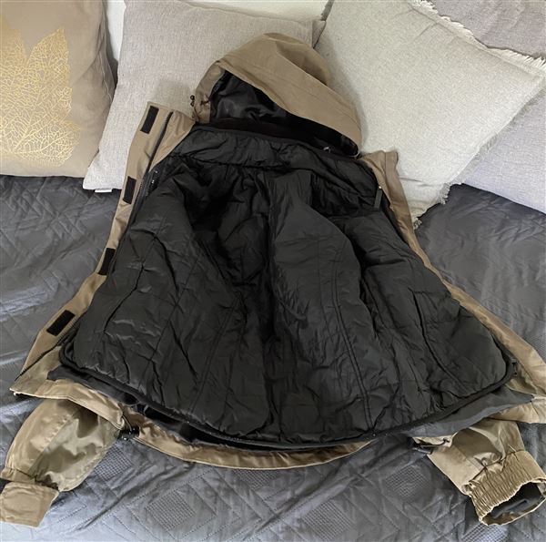 3i1 varm jakke, som er vind og vandafvisende og kan bruges på flere årstider, da inderjakken sort kan tages ud og bruges seperat.