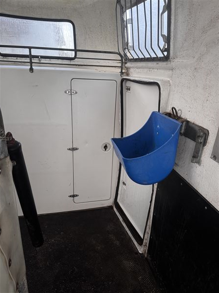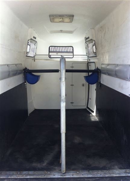 Indvendigt rytterrum, bakspejl, stor frontvindue, tagluge og sidevinduer der kan kippes. Fast bagklappe.