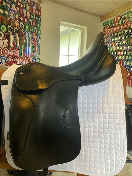 Flot, velholdt Passier Optimum dressursadel. Har fået helt ny uldstopning, nye gjordstropper og nye linere ved Ingdam's. Ingen ridser eller slidmærker.