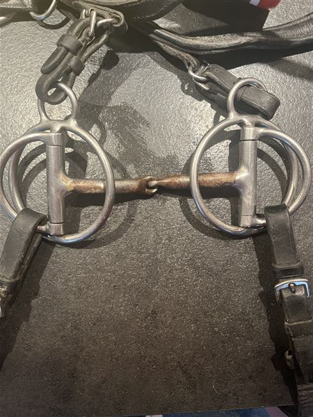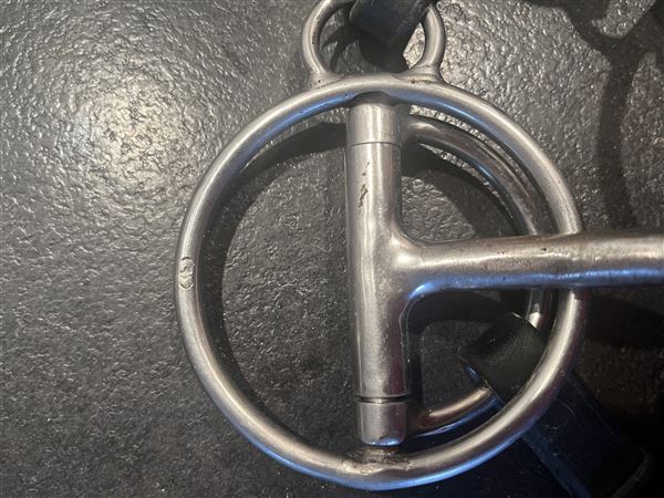 Biddet er på forsiden af "Bag om biddet" af dyrlæge Suntum Sørensen. Der følger en brugt, intakt Micklem trense med!
