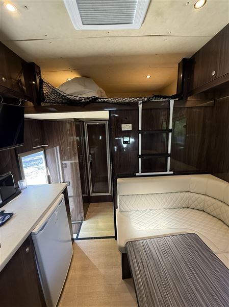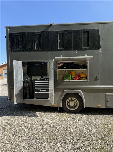 Lastbil fra 2015 men ny opbygget til Heste i 2019 med living til 5 sovepladser.