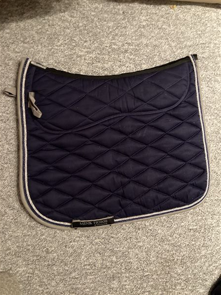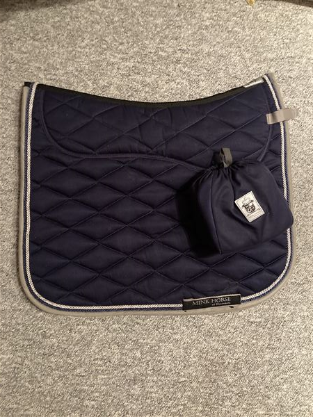 Super fint dressurunderlag str. 17” og bandager fra Mink horse i navy.
