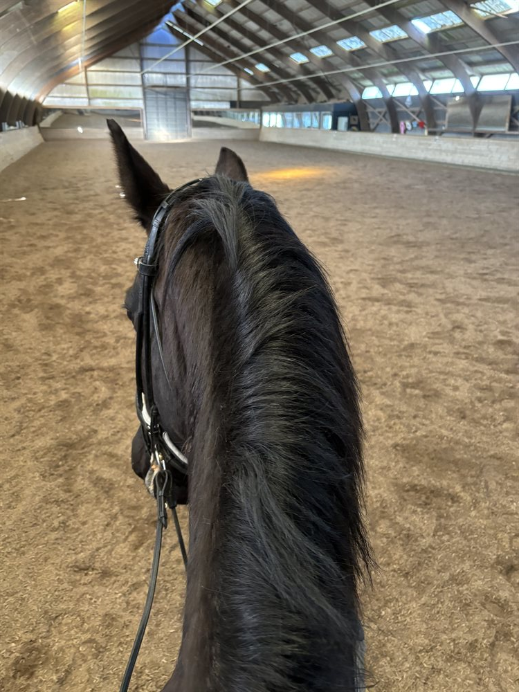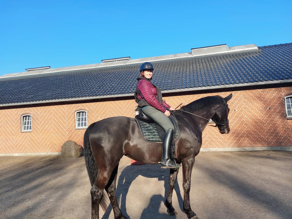 Hun er først redet kontinuerligt fra hun fyldte 5, er stabil gående giver altid en god ridetur, kikker lidt på tur men bliver ikke dum. Er ikke fremadgående vælger altid et roligt tempo, kunne måske endda være velegnet som Para hest. Hun har 3 fine gangarter, hvor skridten er virkelig god. Hun har ingen stævneerfaring. Fungere fint uden sko.