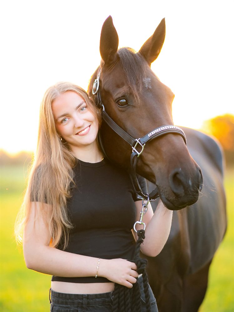 Sød, omgængelig og elegant hoppe fra 2020 efter Gørklintsgaards Santos, søger nu nyt hjem pga. private omstændigheder.