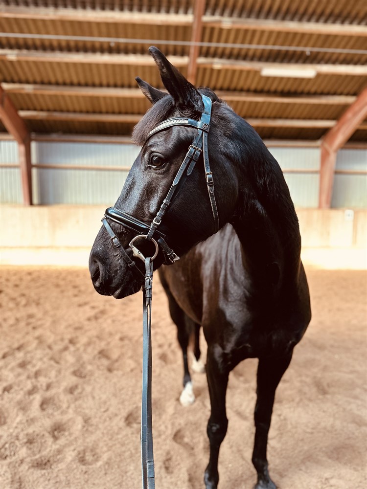 Trænes til dagligt på LB/LA niveau, og udvikler sig for hver dag. Er påbegyndt sidebevægelser, mangler lidt balance og styrke for at være stævneklar i LA. Nyder også gerne små spring og skovtur.