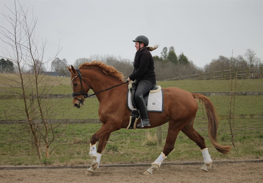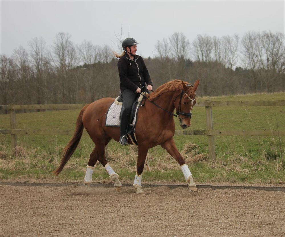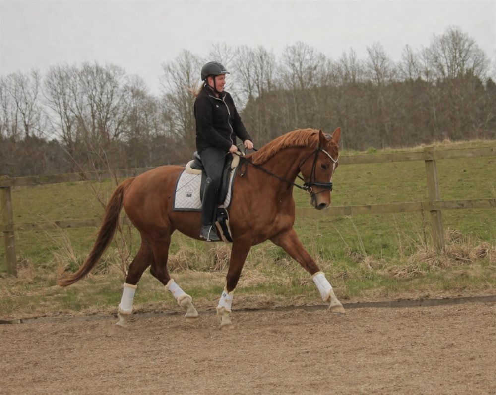 Hun er nem at ride. Hun giver rytteren en god fornemmelse. Dejligt sug og svinger godt og vil gerne gøre rytteren glad. Hun er en rigtig pleaser.